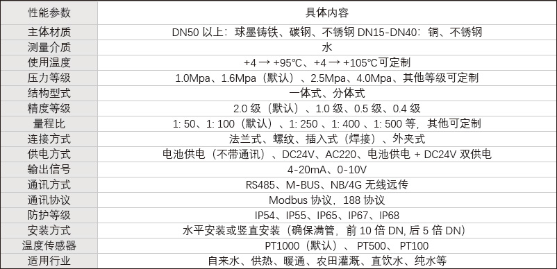 超声波能量计由超声波流量计、进回水配对温度传感器和计算器组成,用于测量及显示暖通系统中水流经热交换系统所释放或吸收的热量。产品通过超声波时差法原理测量水流量,通过温度传感器测量供回水温度,由计算器按照热力学能量计算公式计算得到热量值。